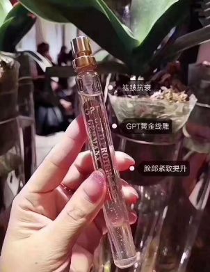 GPT黄金蛋白肽套装内容为5支黄金液+1瓶(12根)黄金蛋白线,建议10天内用完。第一次操作时先将黄金液喷于面部,然后将12黄金蛋白线按照肌肉走向布线(布线时手一定擦干),一般为左右脸各四根,额头三根,下巴一根,然后喷黄金液,第一次操作使用一整支黄金液,进行由下向上逆时针打圈按摩,剩余4支每支分三次使用喷于面部每天早晚使用,两天用光一支。