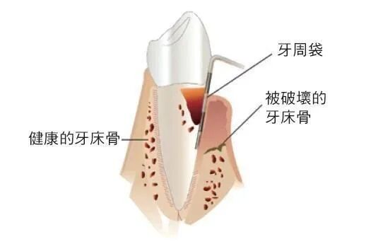 当牙周袋形成后,食物残渣、牙菌斑和结石等更易堆积,进一步的破坏更深的牙周膜,如此不断的恶性循环的结果,终至牙周支持组织全部破坏殆尽,牙龈出血、牙周疾病等随之而来。