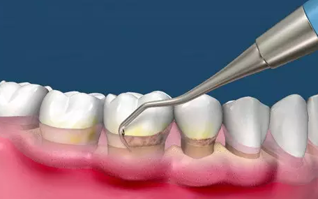 手工刮治通过比较精细的龈下刮治器刮除牙齿附着的牙石和菌斑。而超声洁牙机则通过高频率震荡传导至特制工作尖,将能量集中在工作尖并释放,对顽固坚硬的牙结石产生较大的冲击力,并将其震碎,使其从附着的牙面脱落。同时,超声震荡产生的水雾将环绕在工作尖的周围,将牙结石的碎屑冲洗殆尽。