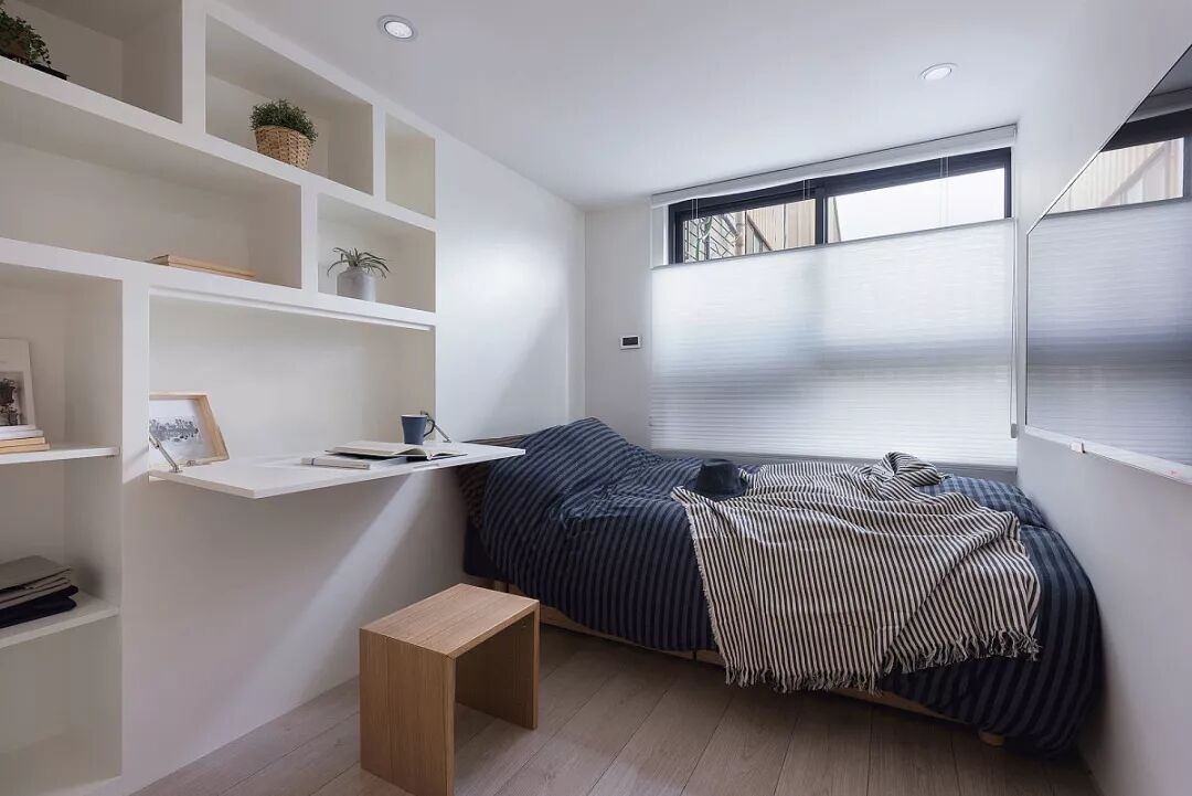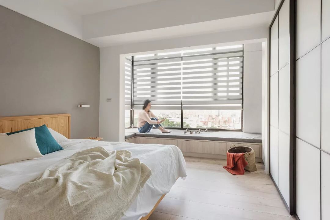 主卧窗边延伸卧榻休憩空间,疲累时放鬆眺望远景,大面採光的光洒