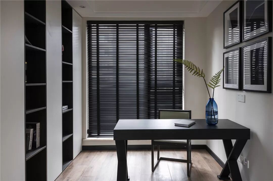 茶室,作为以后的儿童房使用,简单的线条黑白相间的设计与整体空间统一,即合理利用了空间,又增加了储物面积,可谓一举两得。