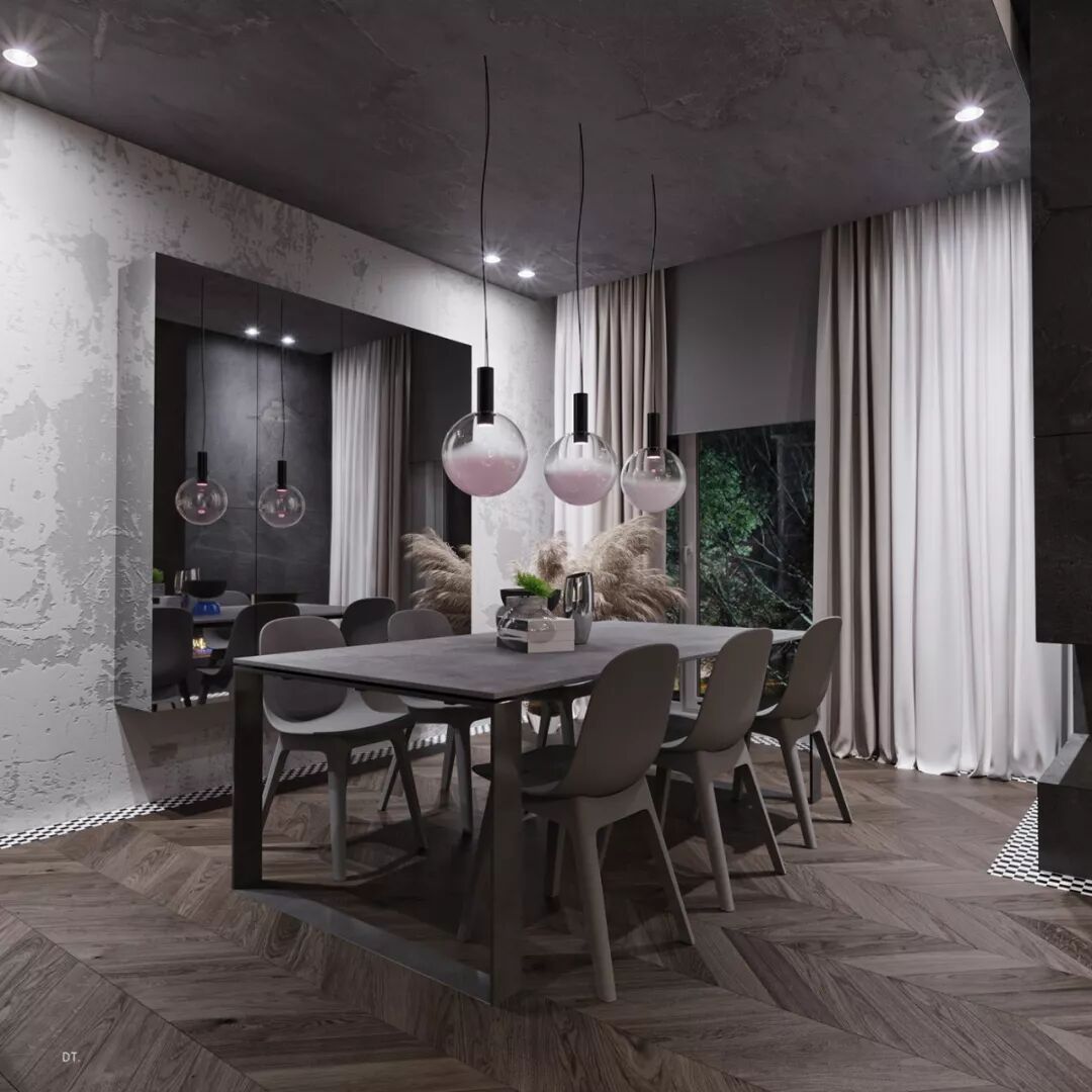 方格雕刻的灰色墙壁、怀旧椅子搭配上黑白地砖,复古感满满。