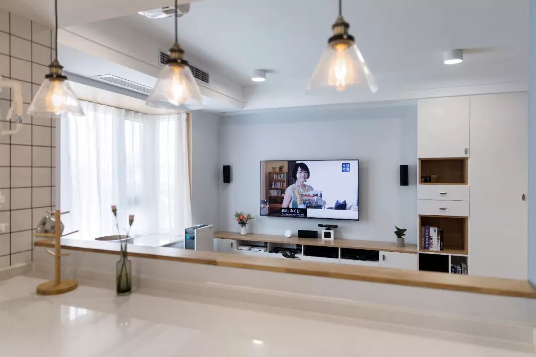 常规的电视墙设计就是一面单独盛放电视的柜子,而在应用过程中往往存在难以避免的空间浪费嫌疑,尤其是对于空间有限的户型,免不了需要一个兼具收纳与装饰性的电视墙,而这样的要求可以通过定制来解决。