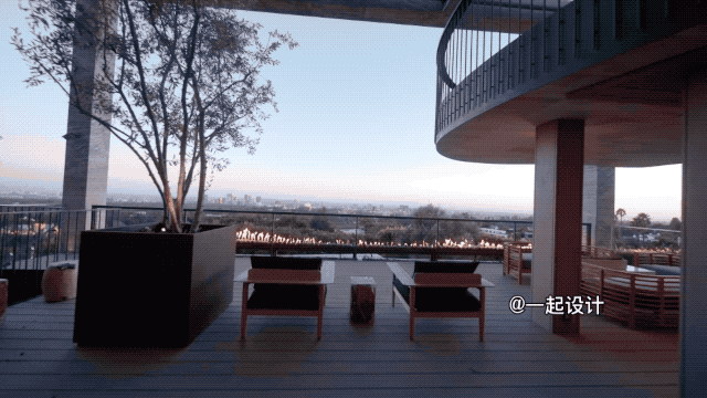 主卧室在顶层,这里的露台能看到洛杉矶的景色▽