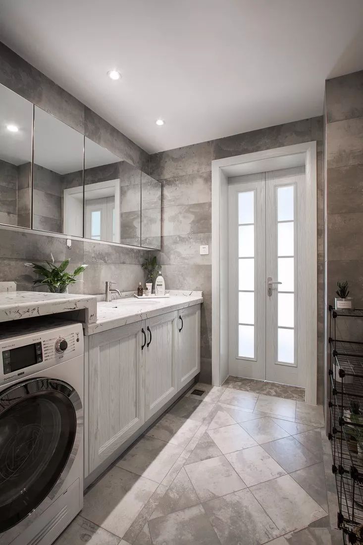 摆放洗衣机的地方,需要满足进水与出水的条件,除了阳台,比较符合这条件的就是卫生间了。把洗衣机放在卫生间里面,也是一个比较方便的选择,洗澡的时候脱下的衣服就可以顺手塞进洗衣机,这就大幅缩短了生活动线与时间,洗澡洗衣一条龙,手洗的衣服也可以立马放到洗衣机里面脱水。