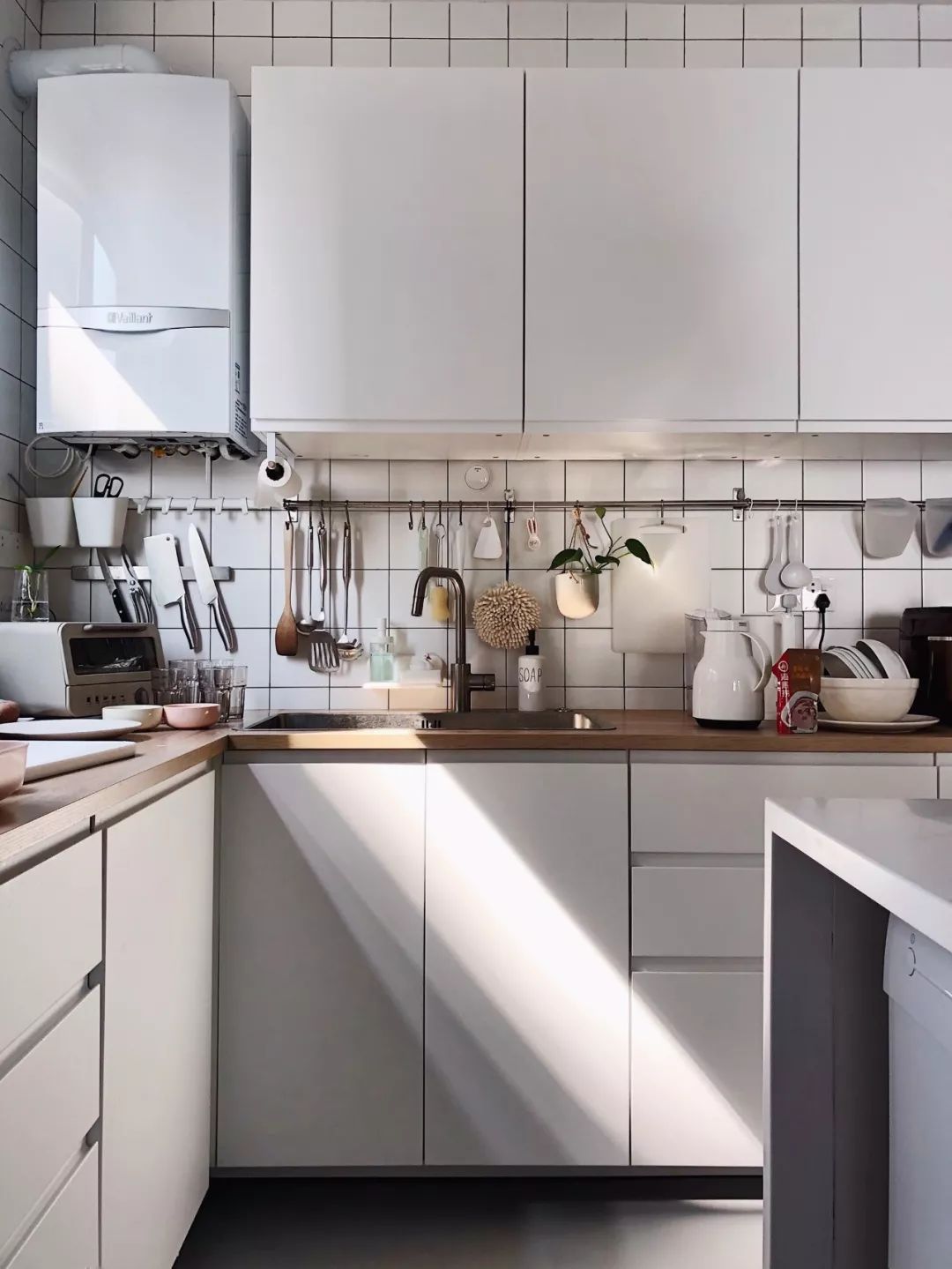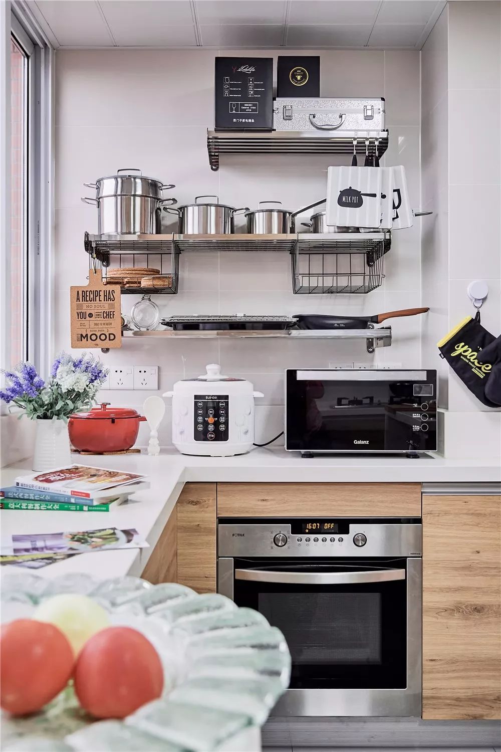 对于刚需性的商品房来说,家里的每个空间几乎都是刚刚好,甚至在一些厨房卫生间等较小的空间,会出现紧凑拘束的情况。遇到这样的情况,原因也是多方面的,一方面是空间面积小,一方面也是空间利用不充分。 相信不少人都会有这样的感受:同样的户型,邻居家的房子怎么进去就感觉那么舒服呢?这主要就是空间规划设计与利用的小技巧了,下面我们就来介绍一个小厨房的利用技巧——墙面收纳!