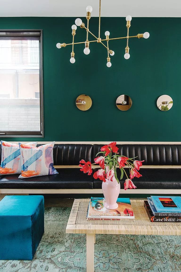 这种颜色可以融入室内,作为卧室或餐厅的装修特色墙,并与金色或黄铜色调和装饰、搭配。