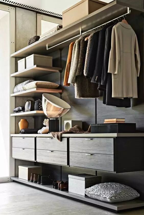 开放式衣橱虽然很受欢迎,但是内部结构设置也非常重要,合理布局衣柜内部结构,首先要根据主人的身高和生活习惯来定制。