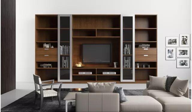 ▲电视柜、茶几、沙发是客厅的标配,但沙发旁边添了隔断储物柜,内部错落的半开放式收纳空间,时尚舒适感扑面而来。