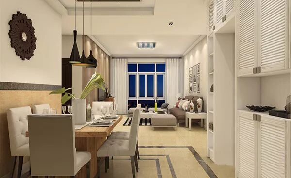 ▲为区分餐厅和客厅,立柜的设计为整个亮点,不仅具有隔断功能而且也能做收纳柜使用,一举二得。立柜的材料和餐厅、客厅呼应,整体感十足。