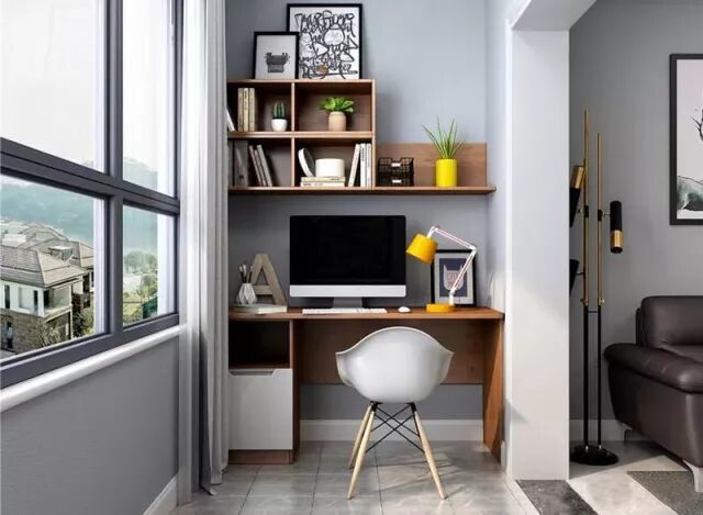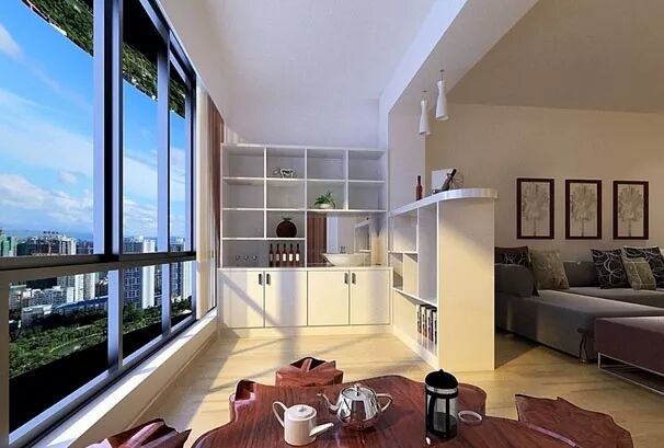 阳台设计学习办公一体柜,办公之余,一扭头就能看到窗外景致,休闲工作两不误。