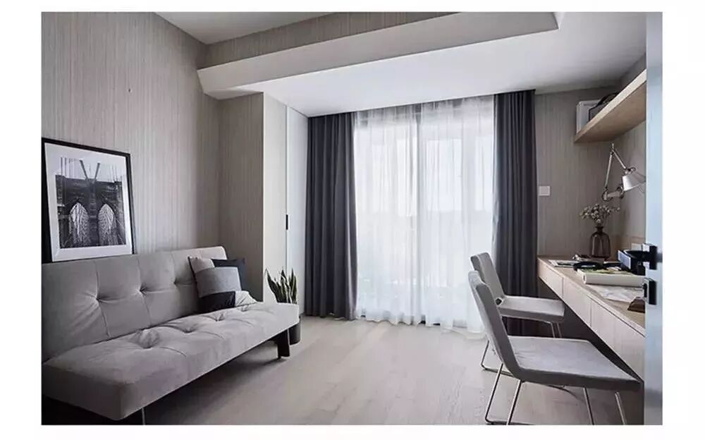 ▲书房布置了双人位书桌,同时在书桌后方摆了一张小休闲沙发,平时在这里加班工作累了,还能移步到沙发上休闲放松一下。
