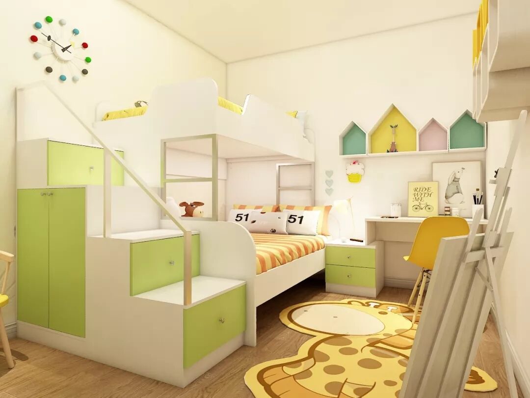 儿童房上下床能够帮大家解决这揪心事,上下两个床位,老大老二都有地方睡。