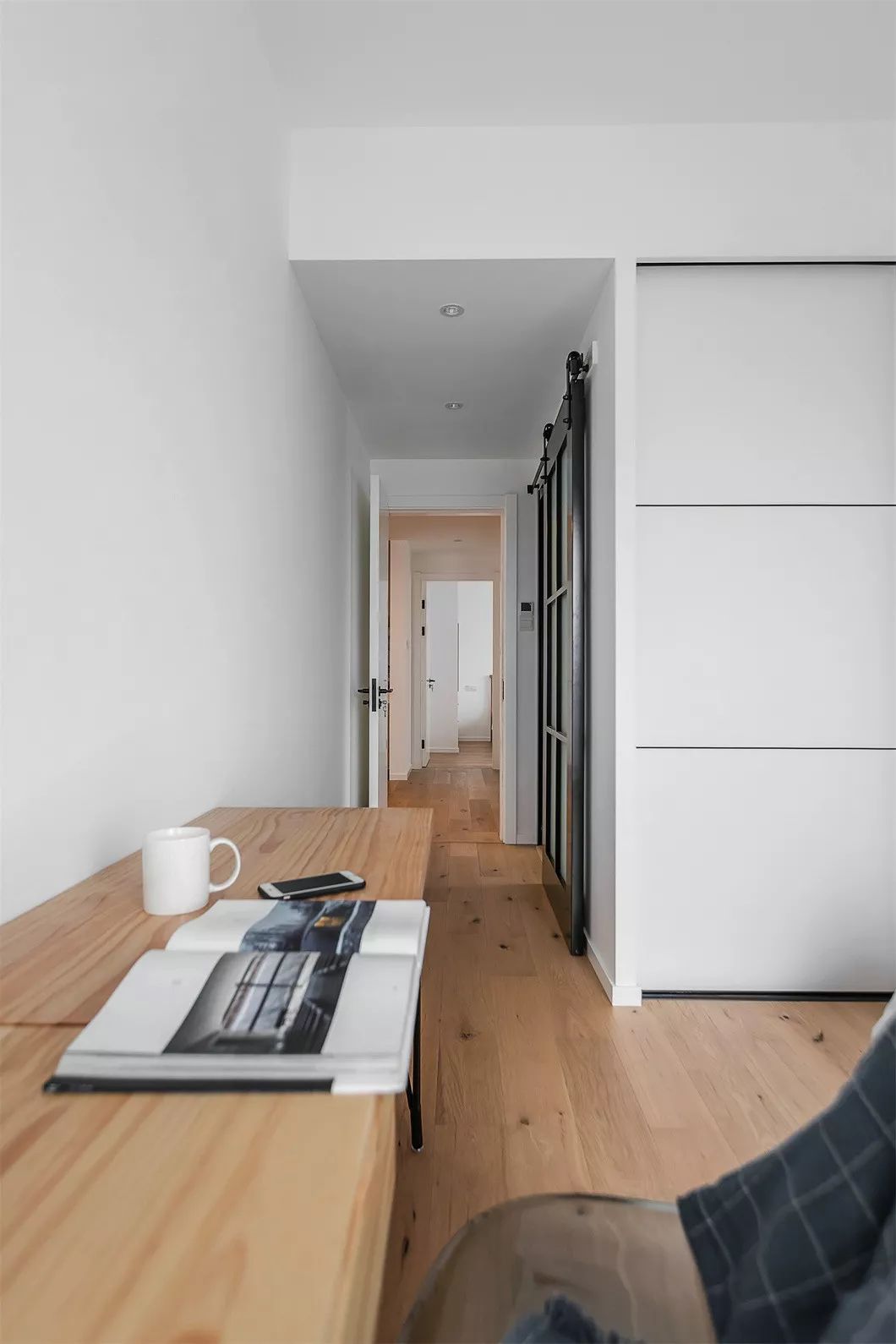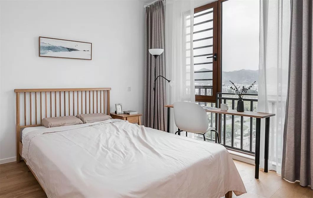 主卧与次卧同时打开房门形成南北通风,延伸的实木地板从中柔化了空间界限