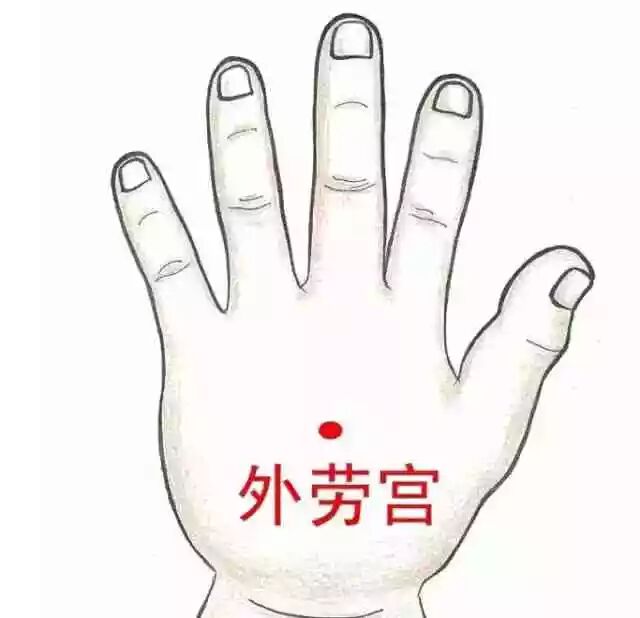 位置:外劳宫(外劳),手背中央与内劳宫相对处。
