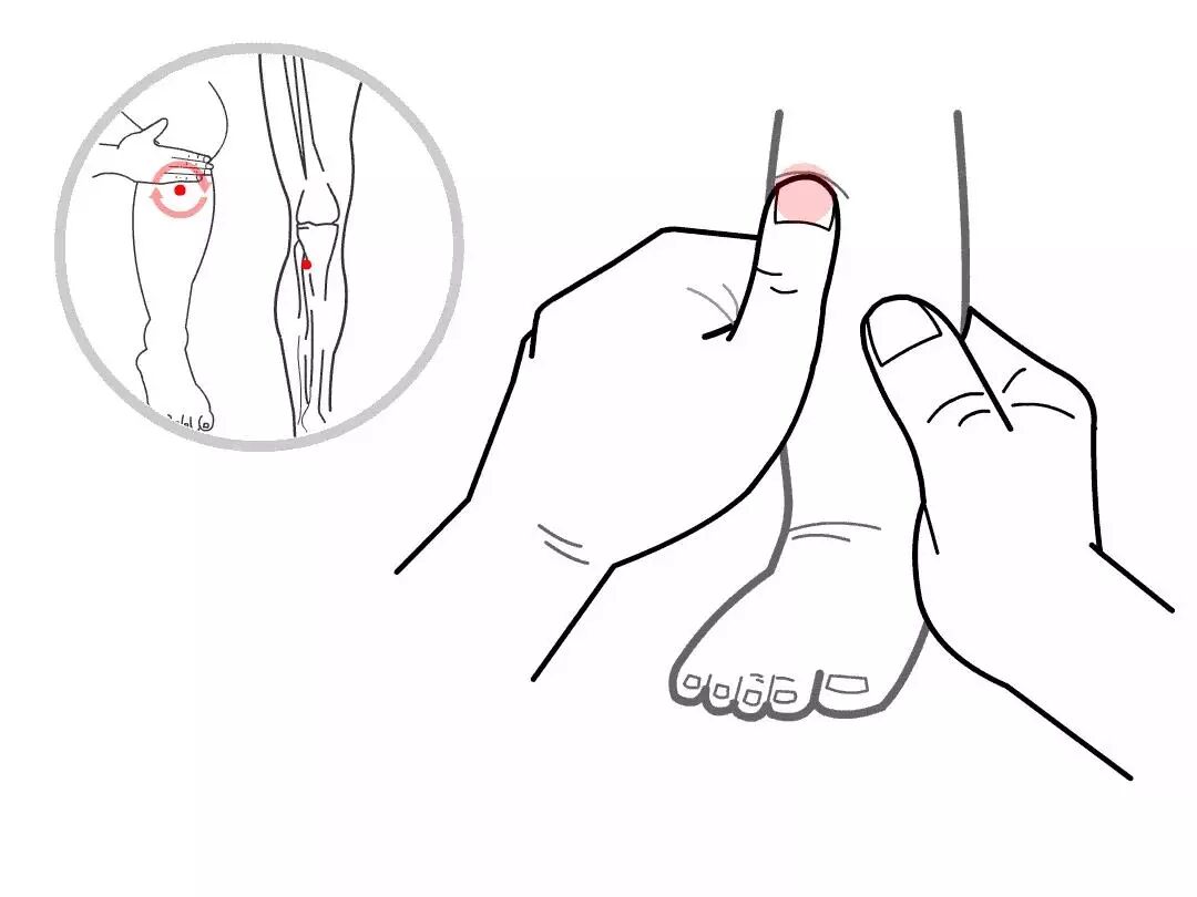 足三里位于外膝眼下3寸(小儿本人的食、中、无名、小指四指并拢,以中指中节横纹为准,其四指的宽度为3寸),胫骨旁1寸(以小儿本人的拇指指间关节的宽度作为1寸)。