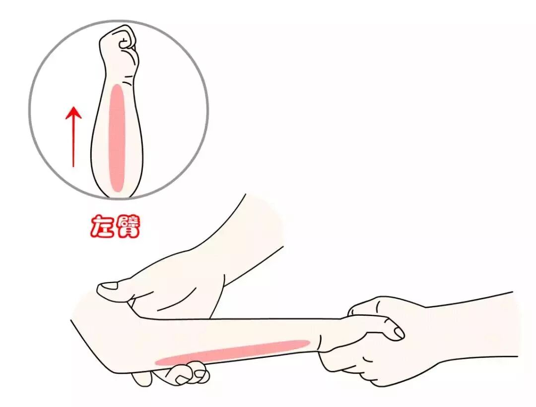 用拇指桡侧面或食、中指二指螺纹面从小儿的肘部下推至腕部。