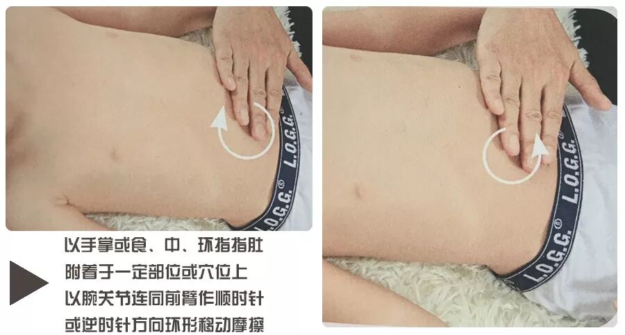 操作:用手掌或三指并拢按在腹部轻轻的摩动,顺时针摩5分钟。