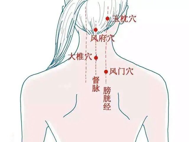2、对于长期穿低领衣服、夏天爱背对着空调吹的人,整个背部僵硬难受,解除大椎穴上寒邪的封锁,很快整个背会热起来!