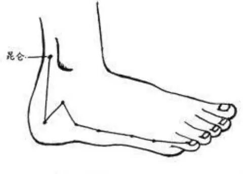 2、两拇指分按两足昆仑穴同时揉捻50下。