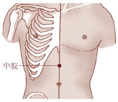 外应穴在上腹部的中脘穴,其位置在剑突与肚脐连线的中点上,主消化系统疾病。
