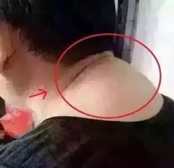 就如下图,因为斜方肌向上移动,堵住肩颈了,这会严重影响脑部供血,经络堵塞及淋巴代谢不好,淋巴是人体的排毒系统,所以堆肉就是毒素淤积,对人体的健康是极大的危害!!因此,如发现脑后堆肉,斜方肌上移,一定要提前调理,可以改善回来。
