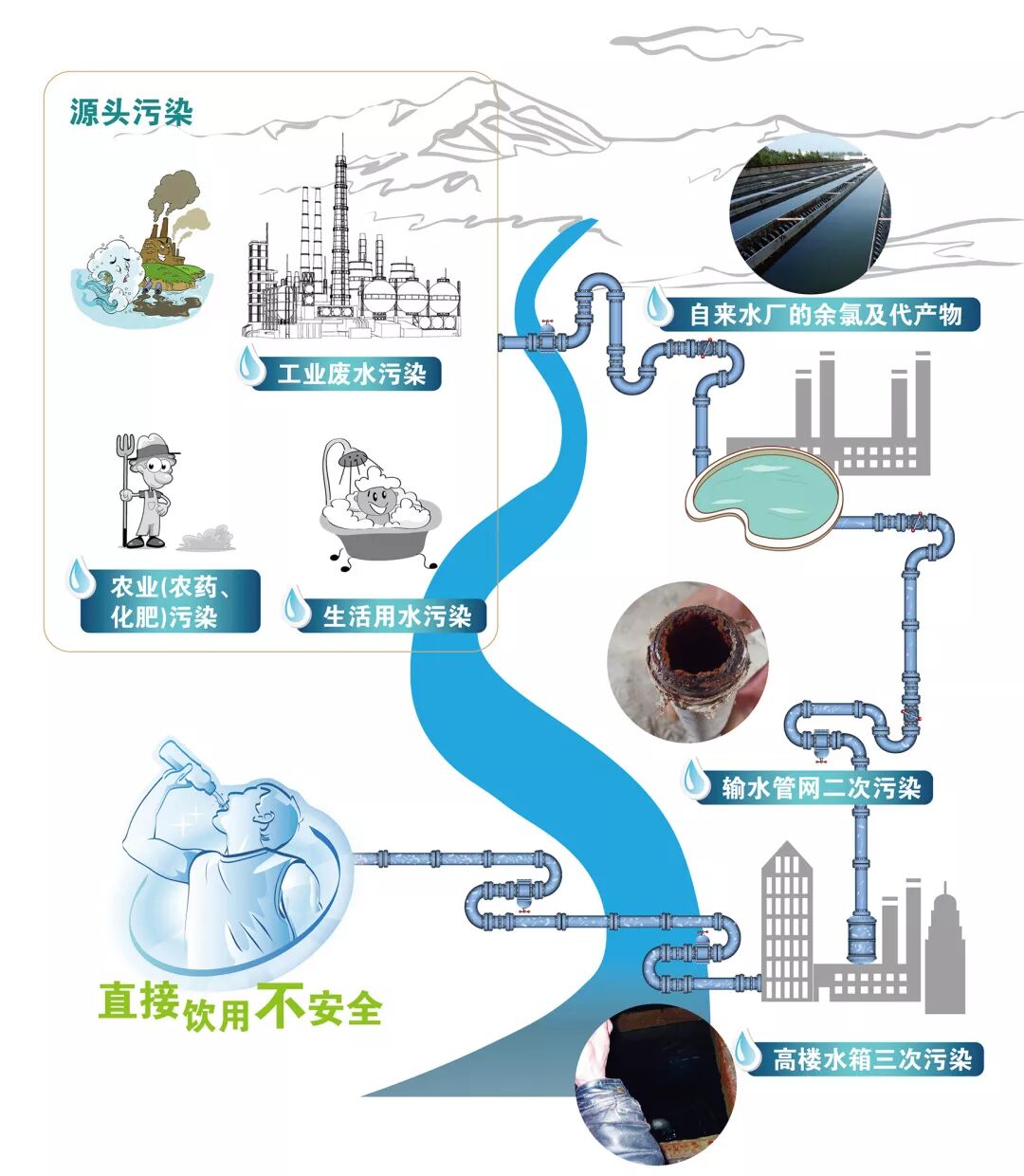 水是生命之源,人体一切的生命活动都离不开水,因此我们每天都要饮用一定量的水来维持身体的新陈代谢,但如果水质较差,长期饮用会影响身体健康。