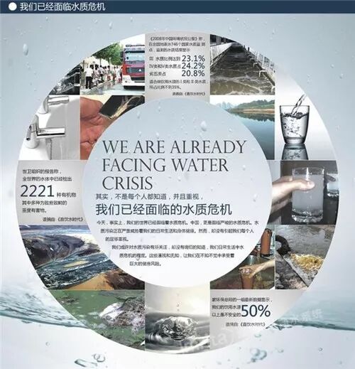 诚然,水对我们如此重要,但事实却令人触目惊心。一方面,环境污染日趋严重,重大污染事件频繁发生。另一方面,人类为了消除水中的有害病菌,在水里加入大量氯化物,其中的“氯”元素却是很多疾病的真凶!