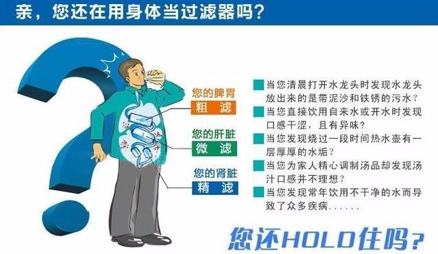 我们都深知安全饮用水对于健康的重要性,但环境问题的日益恶化,原本清澈的水源也被污染,环保部发布消息称,我国有2.5亿居民的住宅区靠近重点排污企业和交通干道,2.8亿居民使用不安全饮用水。这些触目惊心的数据不禁让人忧心忡忡,接近五分之一的国人都在使用这些不干净的水,可想而知我们每天喝下去多少细菌和杂质,您还在用身体做“过滤器”吗?