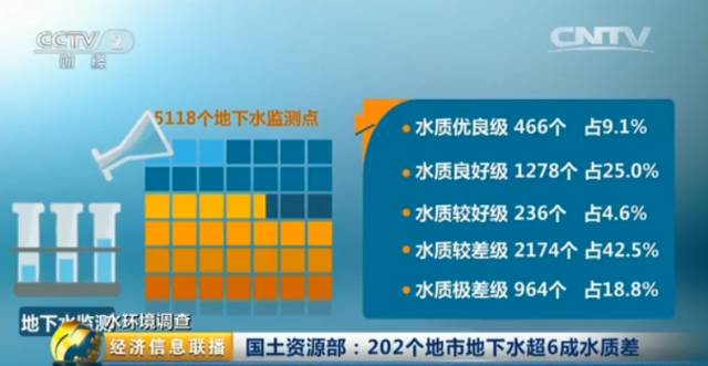 国土资源部曾发布的数据显示,2015年,在全国202个地市级行政区的5118个地下水监测点中,较差级和极差级的水质监测点占的比例超过60%,地下水水质状况并不理想。