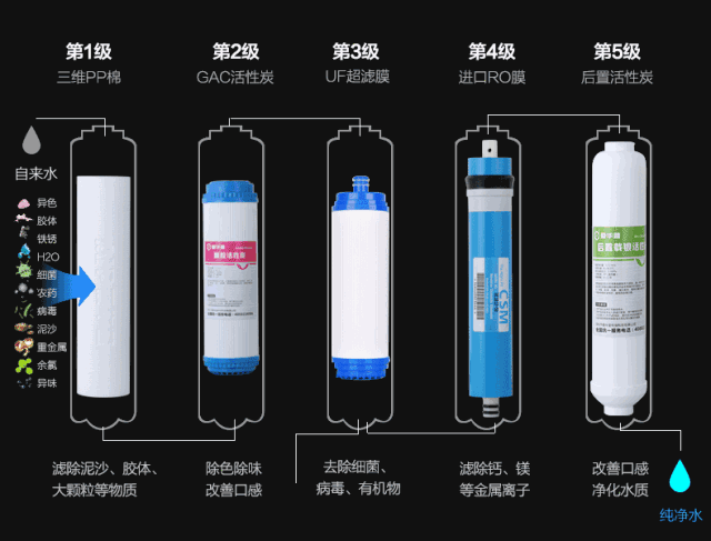 净水器的每一层过滤都将疾病截留;