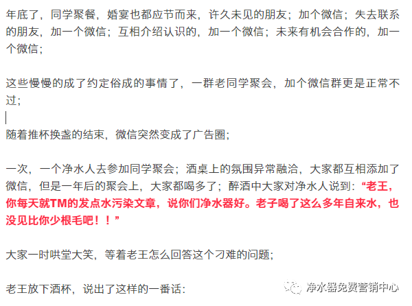 同学聚餐,有人说:我非常烦卖净水器的,净水人的一句话,大家都安静了...