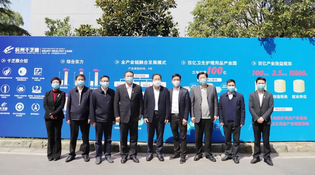 3月19日上午,浙江省委组织部常务副部长张学伟“三服务”工作考察组一行莅临杭州千芝雅,开展“三服务”活动,指导企业疫情防控、复工复产、增产口罩情况。桐庐县委书记方毅,桐庐县县委常委、组织部部长李军,桐庐县委常委、开发区党委书记施建华,桐庐县副县长翁嫣陪同调研。千芝雅董事长吴跃热情接待考察组一行,并做汇报。