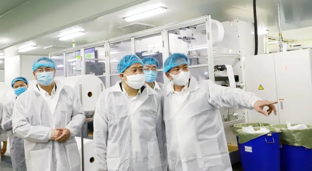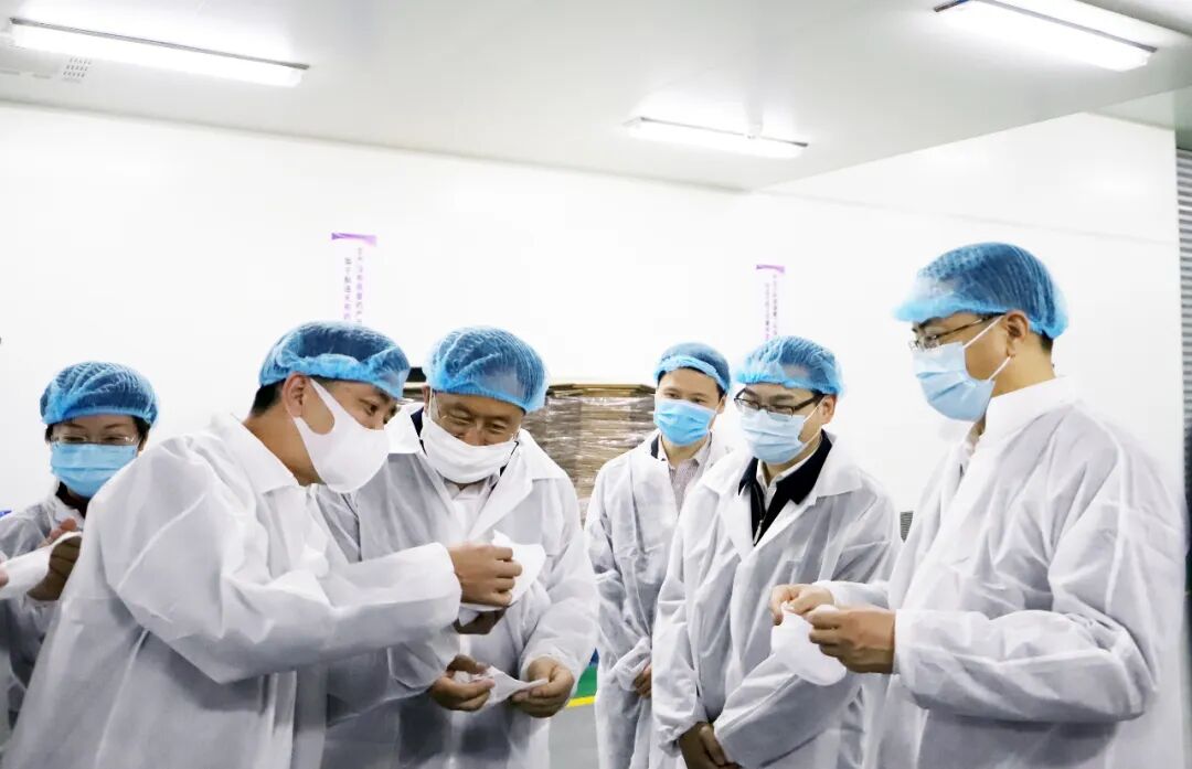张学伟一行,首先来到千芝雅十万级口罩车间,了解千芝雅新增产的口罩生产流程、产能、设备和生产原料等情况。张学伟部长对企业在疫情期间保障口罩等紧缺防控医疗物资的生产供应表示感谢,鼓励千芝雅加强人员调配、加大生产力度,用高品质产品,确保市场的需求,为疫情防控多作贡献。他表示,疫情期间,企业能够迅速增产,为国家解决急需,真正体现了企业的社会责任感和时代使命感。