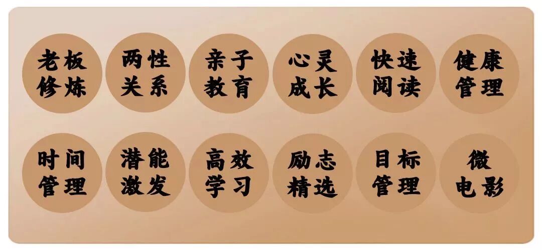 涉及企业发展、个人成长、落地案例3大版块36个不同的领域的知识,是中小企业老板经营事业、家庭及生活的三十六大秘诀,500+音视频课程!