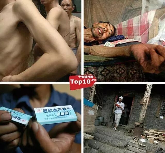 继河北磁县、河南林州之后,河北涉县正成为中国癌症高发区,该县固新、神头等镇近年来的癌症发病率逐年增高,已超过全国平均发病率的几十倍,被人称为“癌症村”、“死亡之区”。癌症患者手术后的伤口。涉县固新村的癌症患者高五生手中紧紧握着一片止痛药,几天来他已经无法进食,只能依靠止痛片的药力来缩短疼痛的时间。对于家庭经济较为困难的癌症患者来说,只有这种价格较为便宜的止痛药才是他们的唯一选择。2004年8月13日下午4时,涉县固新村的一户人家院子当中停放着一副巨大的棺木,亡者家属寸不不离其左右,他们希望亡者可以早日入土,脱离生前的痛苦。