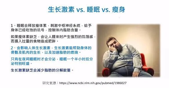 有些人说我尽量的运动,加强锻炼,锻炼之后体力精神变得太好了,然后晚上睡不着。其实这样的方法不见得可以让瘦身的成果变好,重要的是要睡觉。常常讲睡眠一定要充足,睡眠充足才能够瘦得好,就是这个道理。因为晚上睡觉的时候,瘦体素会分泌,能够帮助控制食欲,帮助促进代谢。 【第四个】睡不好的时候,饥饿素会上升。也就是说没睡好,反而白天情绪会比较暴躁,会比较想吃东西,尤其是吃淀粉类的,碳水化合物的东西。特别喜欢吃面包、蛋糕、点心、披萨等等,吃了这些淀粉类的东西更容易胖。所以大家在睡眠的部分一定要注意,能够让自己睡得好,让自己睡得熟。