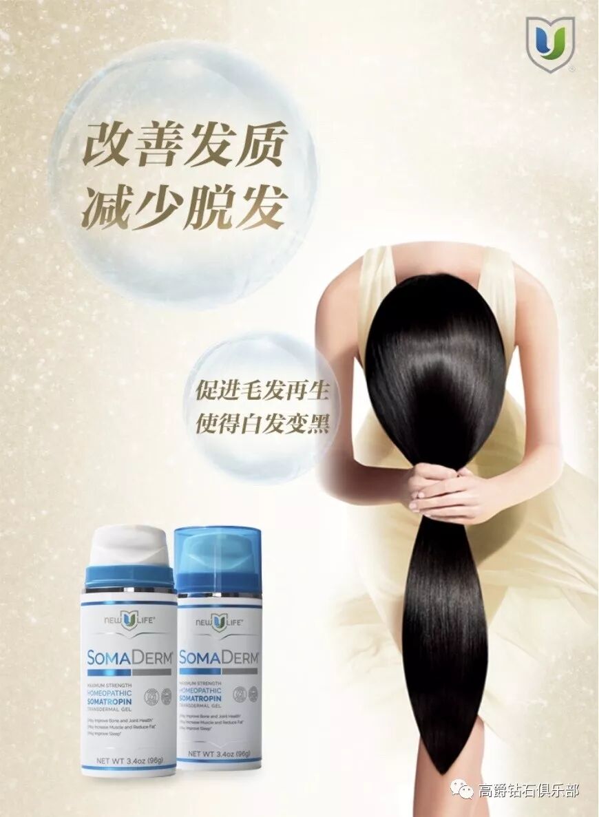 使用SOMADERM [新生命荷尔蒙凝胶]两个月可以让头发新生38%。使用方法简单,无需口服。