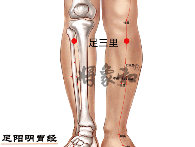 主治:消化道疾病、心血管疾病、免疫功能下降、疲劳、早衰。张杲的《医说》强调“若要安,三里莫要干”,意指反复灸足三里,可起到保健作用。