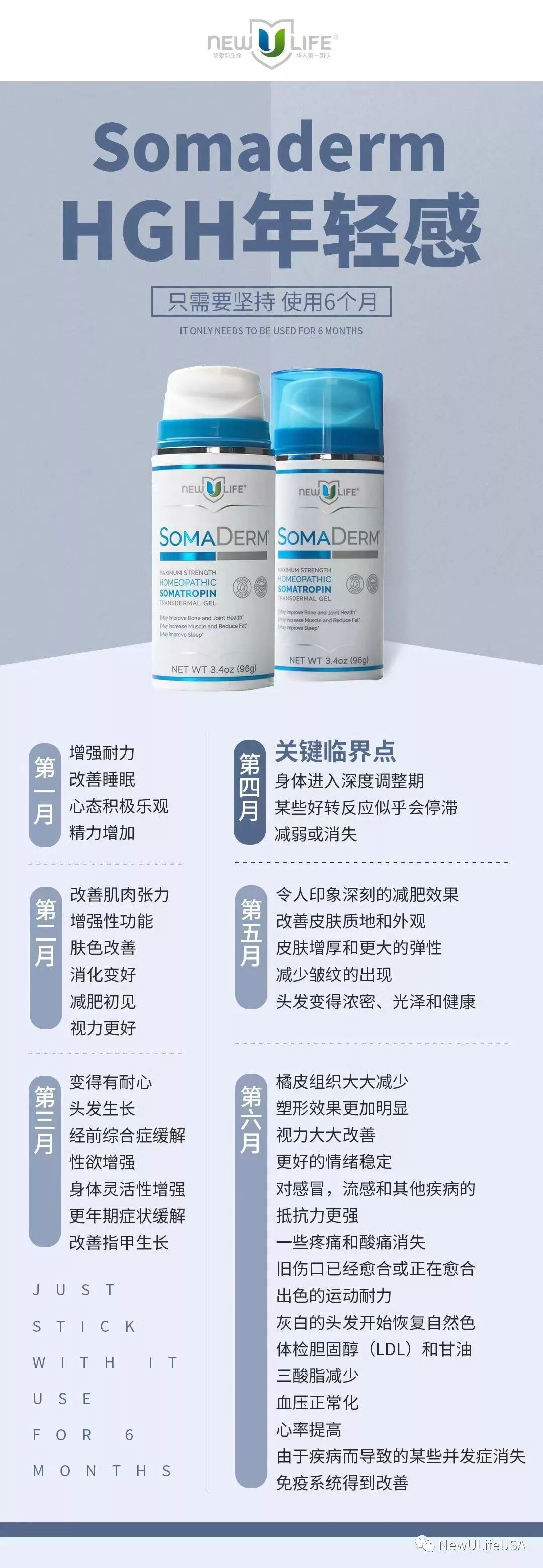 SOMADERM凝胶在美国市场线下销售近二十年,在安全性和功效方面享有盛誉。SOMADERM凝胶是在美国FDA认证的工厂中生产的,NewULife也已取得了第三方实验室测试报告证实成分安全。NewULife公司也正在进行第三方临床研究中,以期验证这种革命性产品的功效。