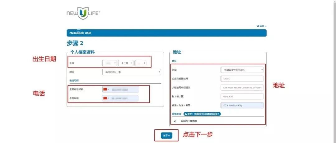 注册流程操作简单,设置个用户名密码,填写生日、电话、香港地址