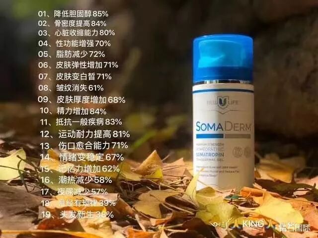 美国New U Life新生命集团的成立旨在树立产品创新和质量的新标准,同时改善生活。New U Life的大型产品SOMADERM是一种透皮吸收凝胶,可安全无害地提高生长激素水平。公司产品的横空出世,完全颠覆了人们以前对于保健品的认识。对于大多数人来说保养身体应该补维他命,补钙片,补一切凡是可以抗氧化的产品。比比皆是的口服片剂,胶囊,水果汁,代餐等让人难辨真伪、无所适从。只有专业人士才知道的,人类研究了几十年的,过去只有富人才用得起的生长荷尔蒙,已经以平民价格,简单的用法,征服了越来越多的已经在使用它的消费者。