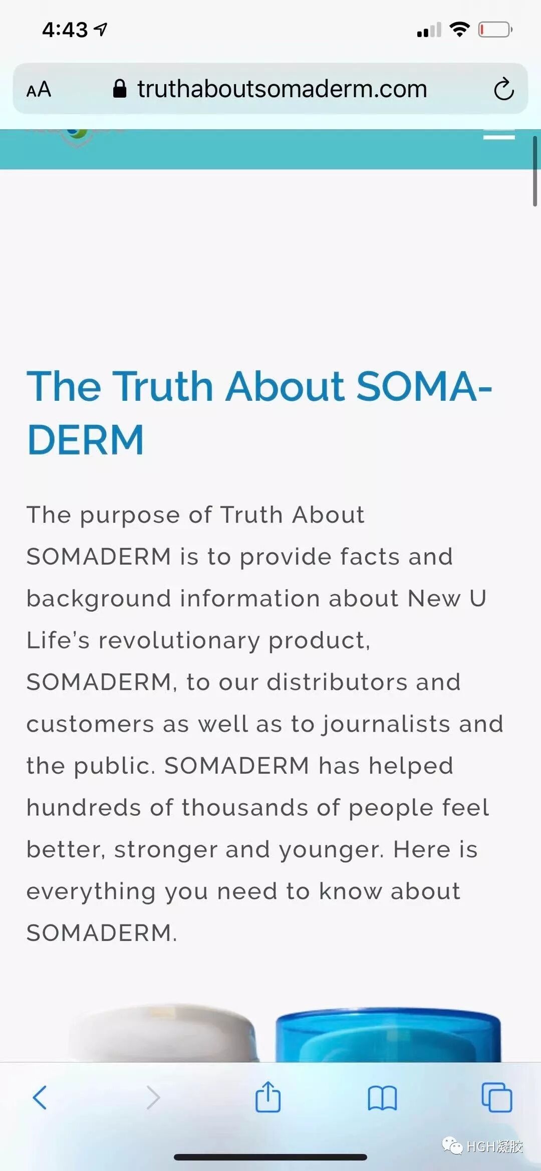 图二:关于SOMADERM凝胶的事实(来自新生命公司的官方网站首页)