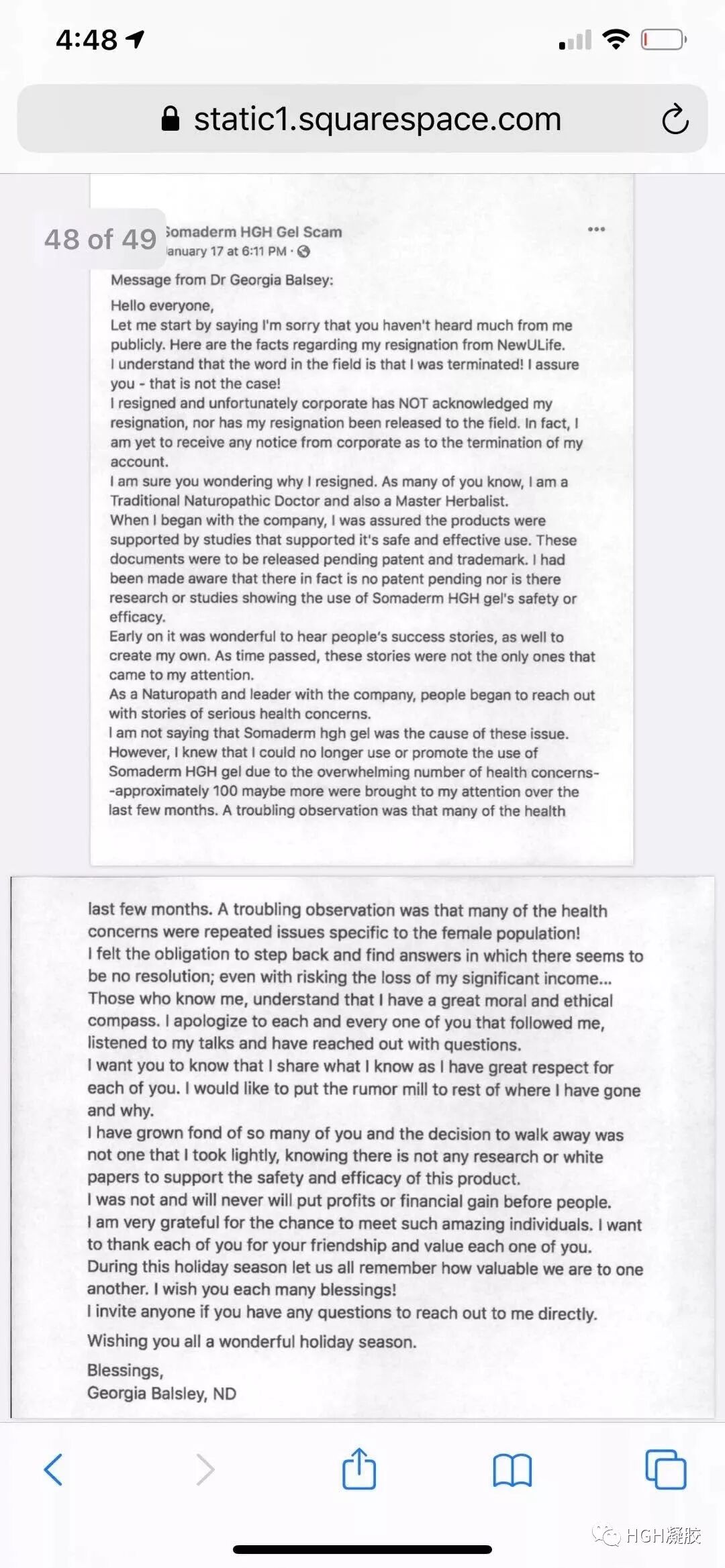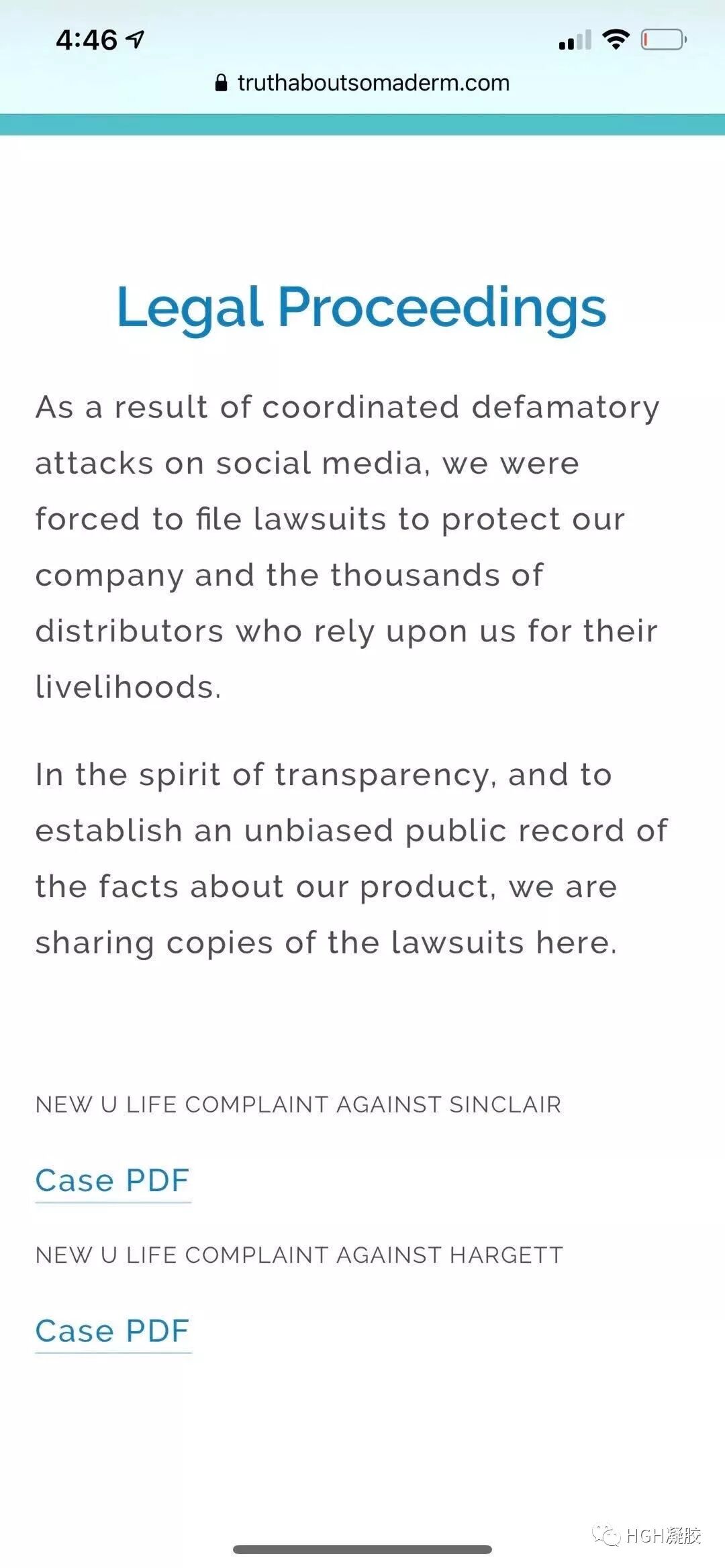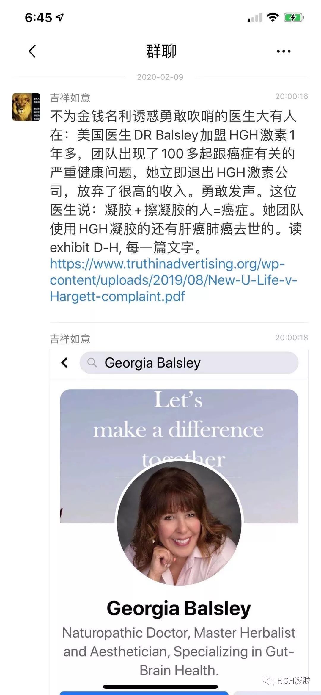 近期,某公司经销商在网络上大肆散播谣言,对New U Life公司及其产品进行疯狂的攻击和诋毁,这些谣言被一些不明真相的人以讹传讹,对于New U Life公司的品牌形象造成了恶劣的影响,导致我们的会员经销商因此遭受了巨大的精神和物质损失。以下是这个事件真实的信息说明,我们还原事实的真相,希望大家明辨是非,并强烈谴责造谣者! 首先简要的阐述一下整件事件的来龙去脉,某公司用于散步谣言的主要依据是一件发生在一年前的事情,一个自称是自然疗法医生的Georgia Balsley女士放弃了自己New U Life公司经销商的身份改做其它公司的产品。之后,不知是她经营的新产品有所需要或者纯粹就是她想为自己造势炒作的原因,她制造了很多伪证来诋毁New U Life公司的凝胶产品,声称HGH SOMADERM凝胶产品使用之后会致癌。因为制造和散布这些伪证和谎言,她最终被New U Life公司起诉,并已经被法院判决执行赔偿New U Life公司十万美金的罚金,公开道歉,并立刻在所有地方撤除不实的谎言信息以结案。 事件至此,这出闹剧本已经结束了。然而,一年后的今天,某公司那些别有用心的经销商为了自身的利益,居然又把这件陈年旧事翻了出来,而且对整个事件断章取义!将Georgia Balsley制造的伪证大肆传播,再次谎称HGH产品会致癌,简直成了天大的笑话。 在此,我们奉劝那些谣言制造和传播者,你们已经触犯了法律,随时都会有被起诉的可能。我们也在此告诫大家,谣言止于智者,希望那些不明真相的伙伴们擦亮眼睛,不要被谣言蒙蔽。 今后,若有任何New U Life公司会员再看到或者收到类似恶意谣传,请截图发给团队负责人,这些将被留作证据最终整理之后发给New U Life公司法律部门,由公司官方进行处理。 图一:某公司经销商发布的诋毁New U Life公司的信息(其网址包含的内容是部分Georgia Balsley 制作的伪证和New U Life的法院胜诉信息)