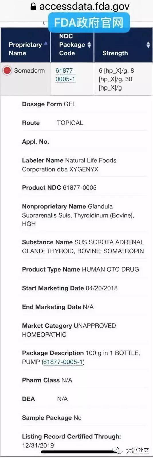 这个产品拿到了美国药监局的药监代码NDC号码(61877-0005-1),这是需要7年的临床实验,无数人体和动物参与实验并且无一例副作用的才可以拿到这个药监代码。