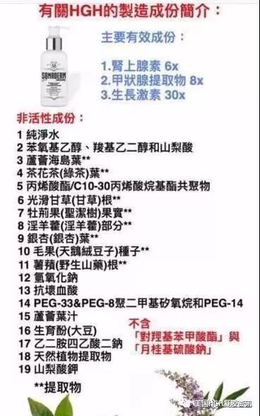 1. 生长激素 30次稀释 (Somatropin 30X) – 最重要的成份,刺激脑垂体,促进组织生长和新陈代谢