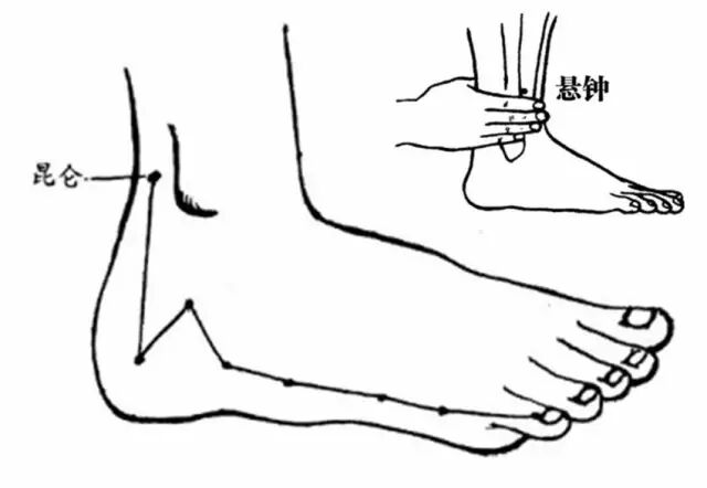 昆仑为足太阳膀胱经经穴,悬钟为足三阳之大络,髓之会穴,经会穴相配治疗下肢疼痛。