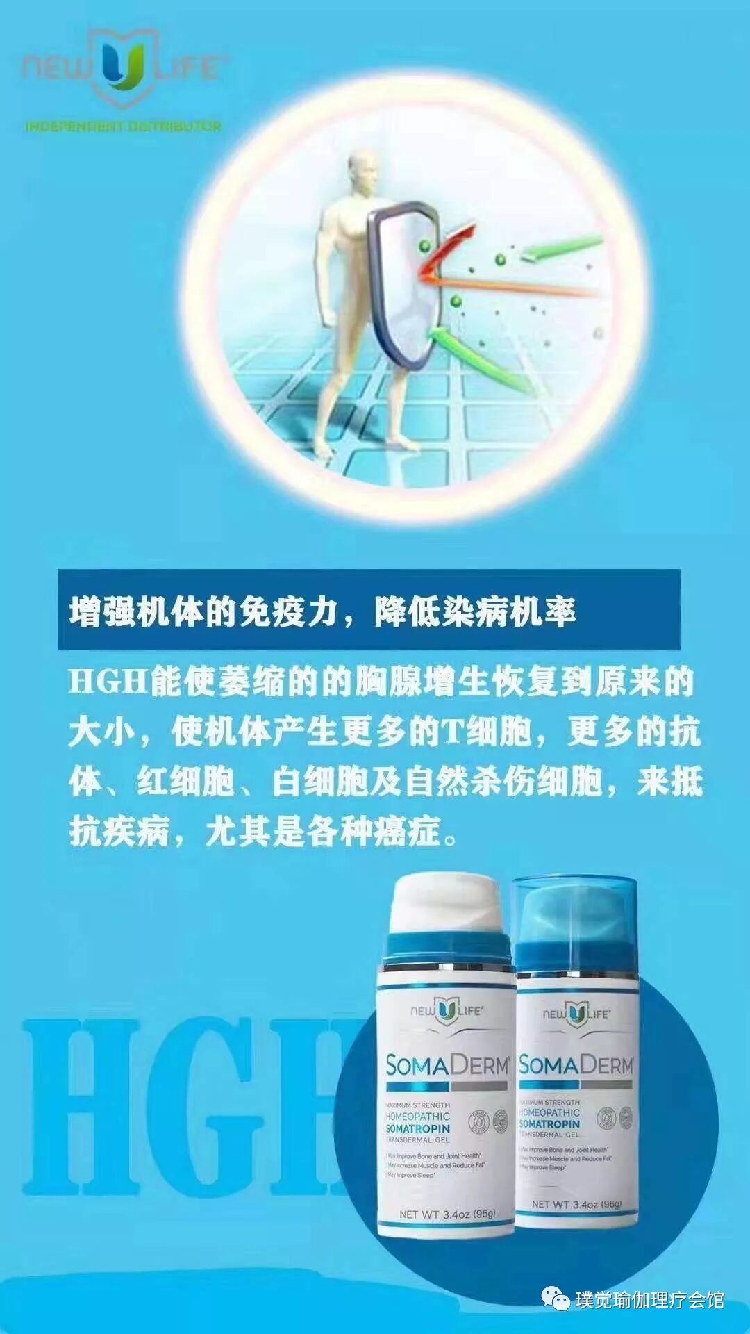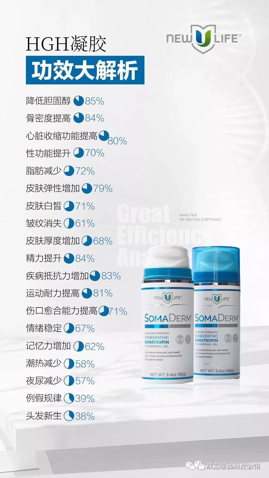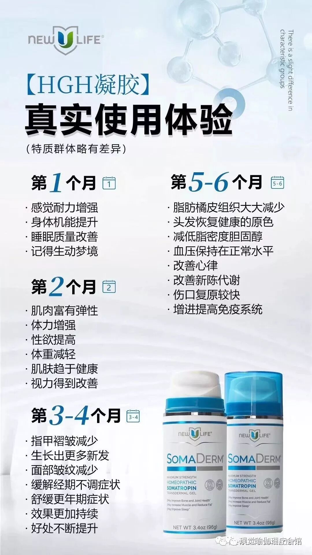 NEW U LIFE公司的SOMADERM凝胶通过涂抹方式刺激脑下垂提分泌HGH是一个健康青春的延缓。