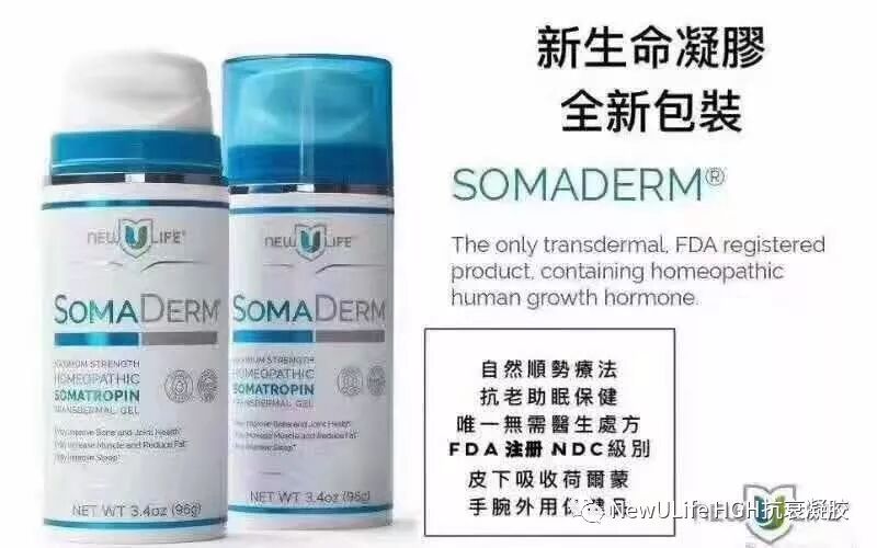 SOMADERM凝胶(NDC#61877-0005-1)是唯一的顺势疗法透皮,非处方,人类生长激素产品,无需处方即可获得。