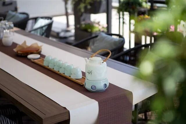 ①桌旗:材质、形态多样,功能类似于桌布,也叫茶席。